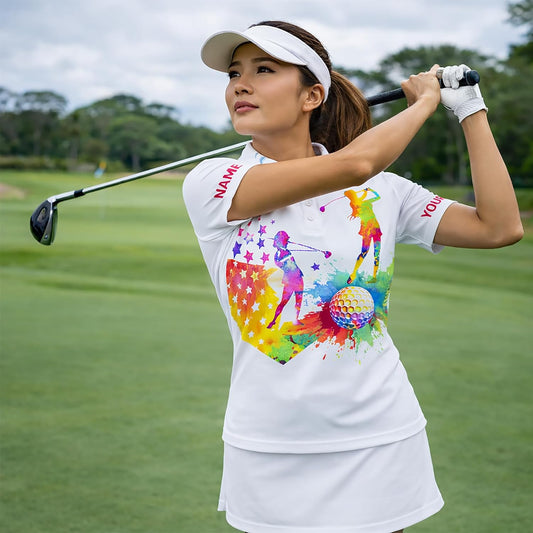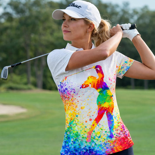 Women Golf Polo Shirt Colorful Splash Golfer Swing Performance Polo Shirt Breathable Athletic Golf Shirt