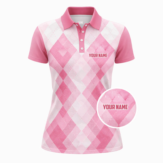 Women Golf Polo Shirt Personalized Argyle Pink Golf Friends Custom Name Performance Polo