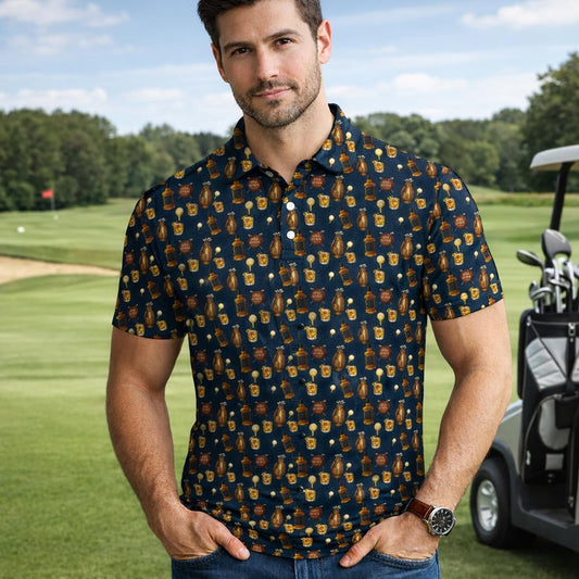 Whiskey Golf Pattern Polo Shirt for Men Women
