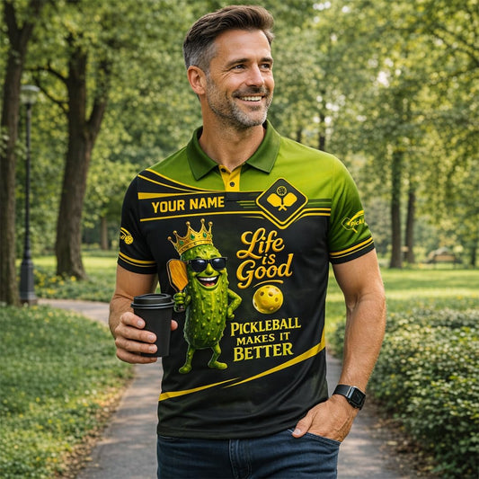 Custom Name Funny Pickleball Polo Shirt Life is Good Pickleball Makes It Better