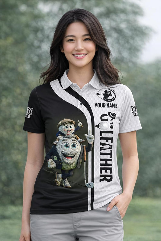 Custom Name Golf Polo Shirt Cartoon Golf Ball Father Son Graphic Black White Performance Shirt