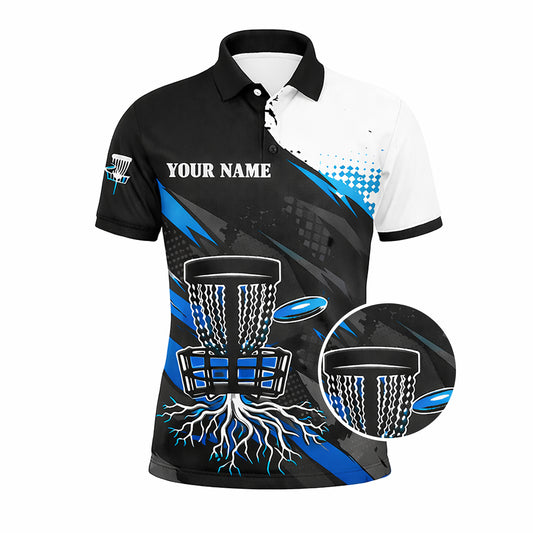 Custom Disc Golf Polo Shirt Team Name Personalized Disc Golf Jersey Black Blue Performance Shirt
