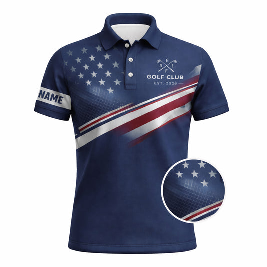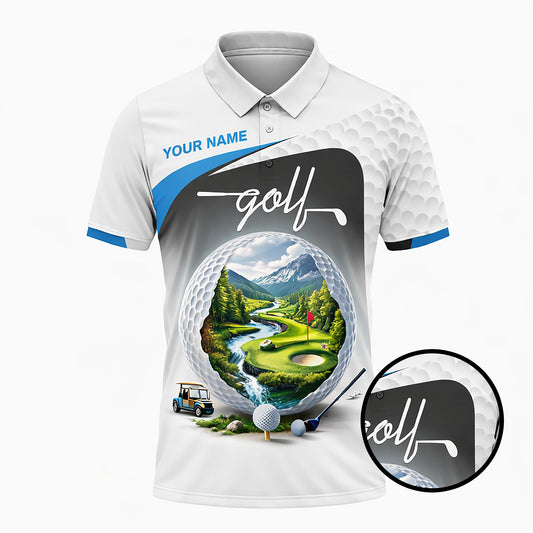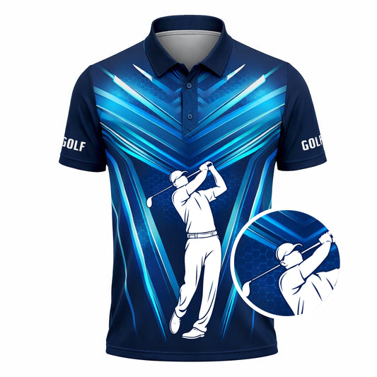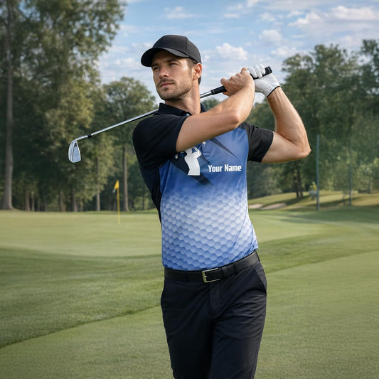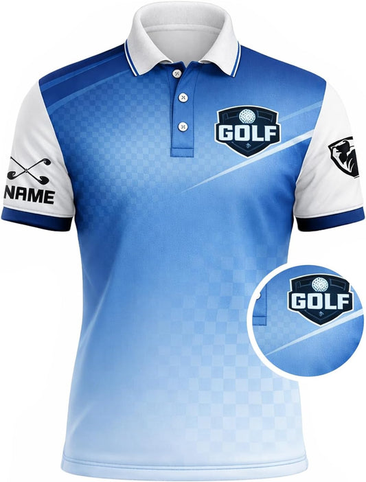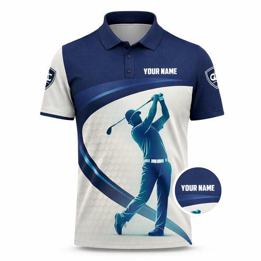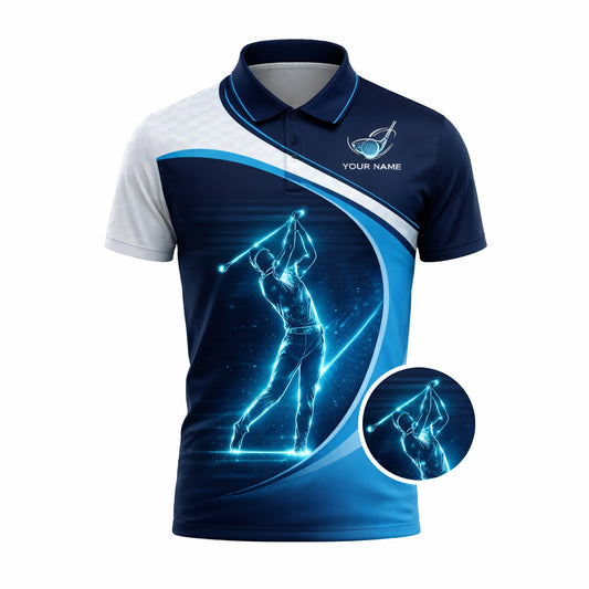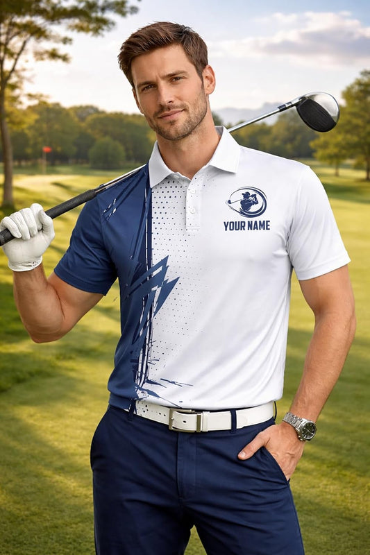 Custom Golf Polo Shirt Personalized Name Blue White Golf Swing Performance Polo Shirt for Men