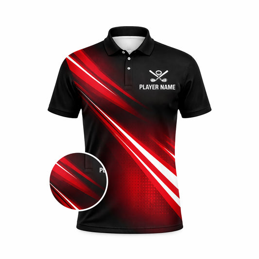 Custom Golf Polo Shirt Personalized Team Name Player Name Red Black Performance Shirt Unisex