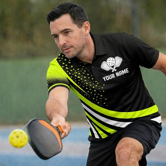 Custom Name Pickleball Team Polo Shirt Black Green Performance Short Sleeve Athletic Golf Style