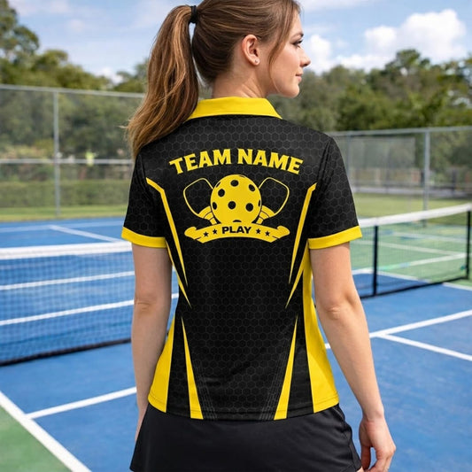 Custom Name Pickleball Polo Shirt Black Yellow Performance Team Jersey