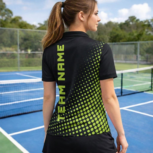 Custom Name Pickleball Team Polo Shirt Black Neon Green Performance Short Sleeve Athletic Jersey