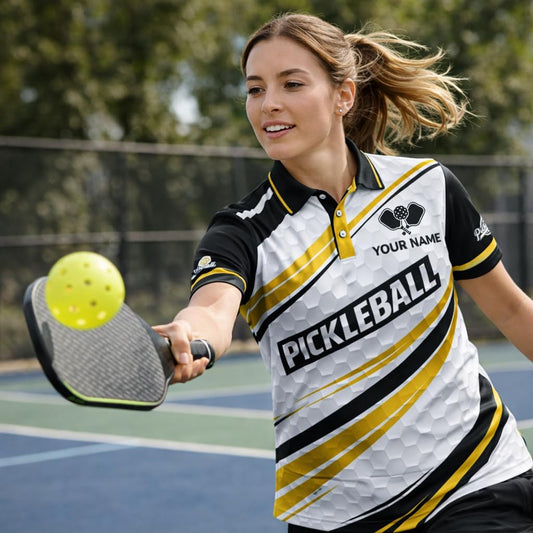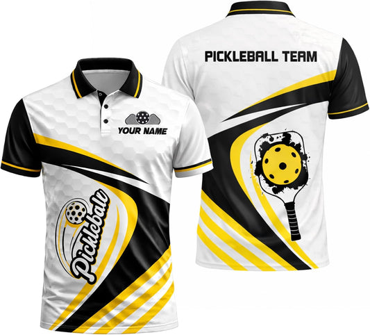 Custom Name Pickleball Team Polo Shirt Black Yellow White Performance Short Sleeve