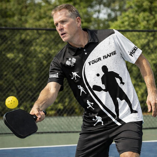 Custom Pickleball Player Polo Shirt Personalized Team Pickleball Shirt Black White Sports Polo