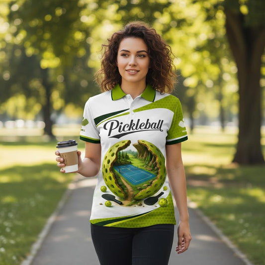 Custom Name Pickleball Polo Shirt Unisex Performance Team Jersey Green White