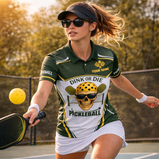 Custom Name Pickleball Polo Shirt Dink or Die Skull Design Breathable Polyester Sport Polo for Men and Women