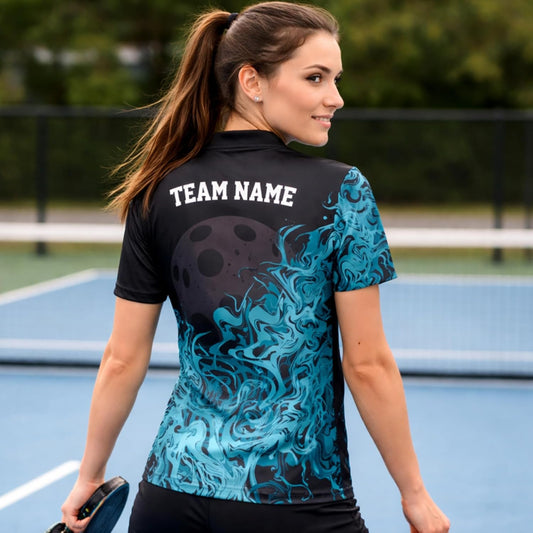 Custom Pickleball Polo Shirt Black Blue Flame Performance Pickleball Team Polo Personalized Sports Shirt